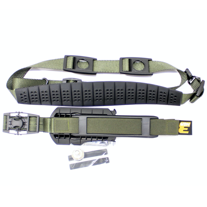 Vous pouvez facilement transformer le 3HGR en un harnais qui répartira le poids de l'arme sur les deux épaules et rendra le portage de l'arme beaucoup plus équilibré et confortable. Il suffit de placer la sangle de support sur votre épaule.