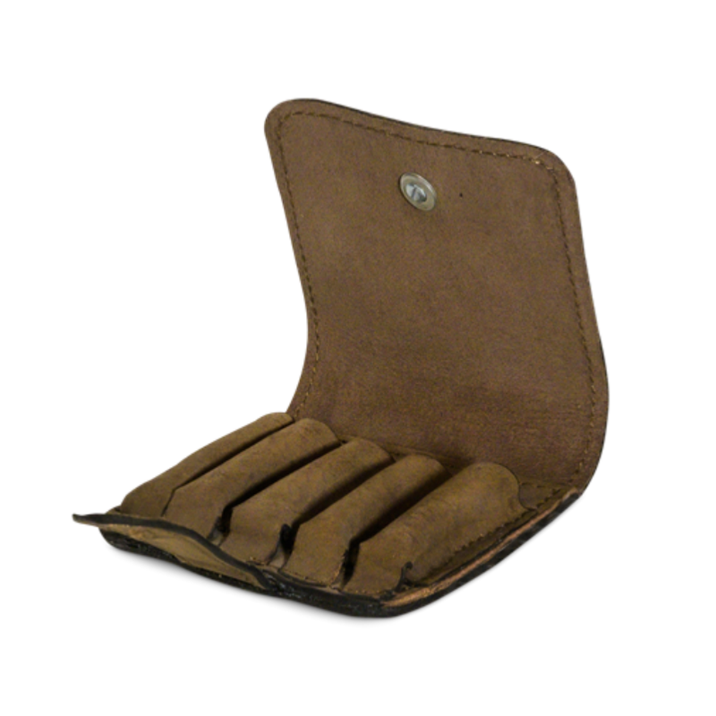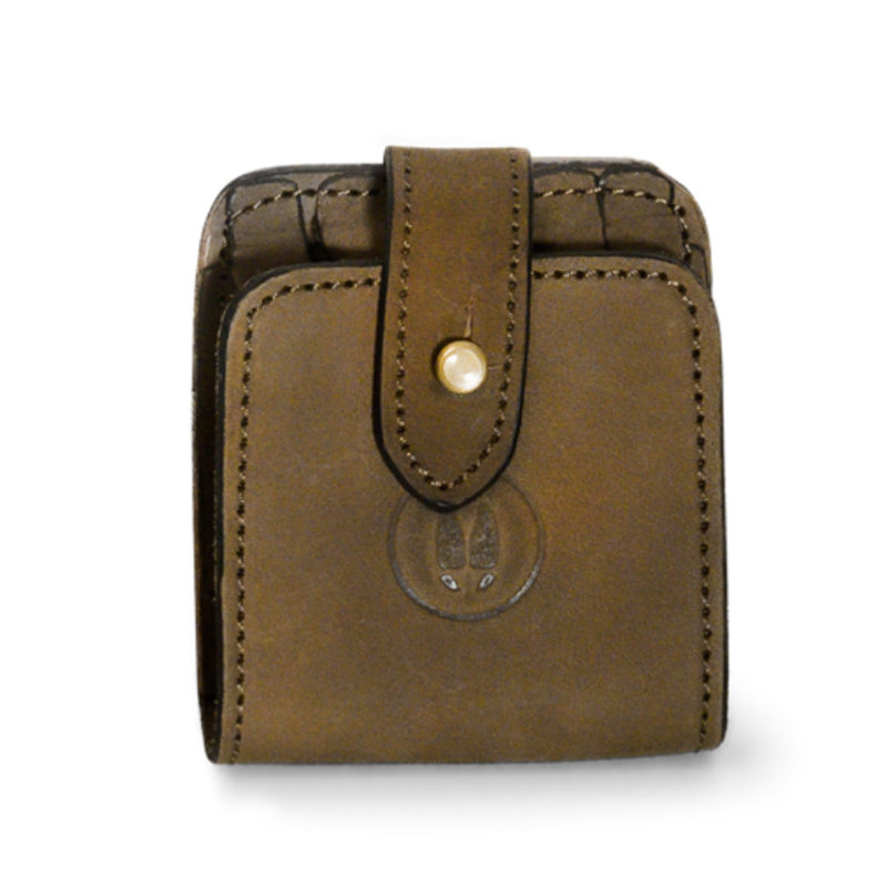 Étui à cartouches en cuir naturel, conçu pour les chasseurs recherchant un accessoire compact, robuste et élégant.