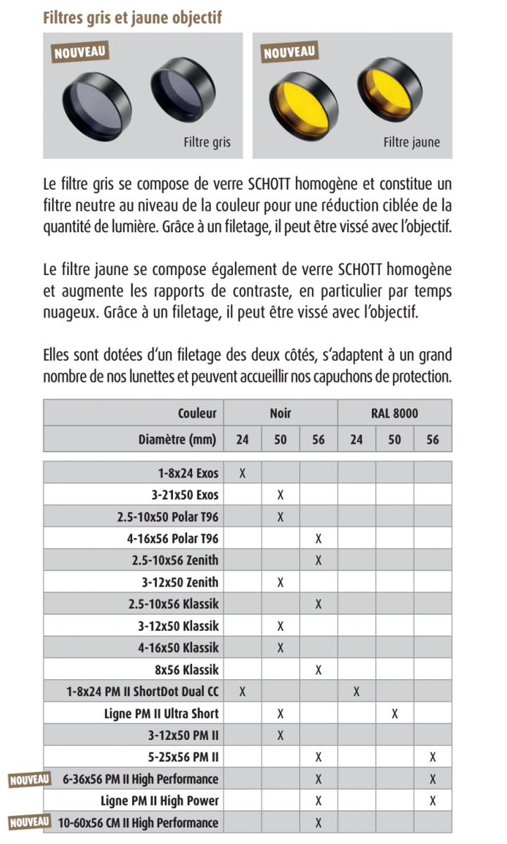 Augmentez le contraste perçu à travers votre lunette, e, particulier par temps nuageux, grâce à ce filtre de lentille hautement fonctionnels. Conçus en verre SHOTT homogène, ils offrent une clarté d'image exceptionnelle et une meilleure reconnaissance des détails.