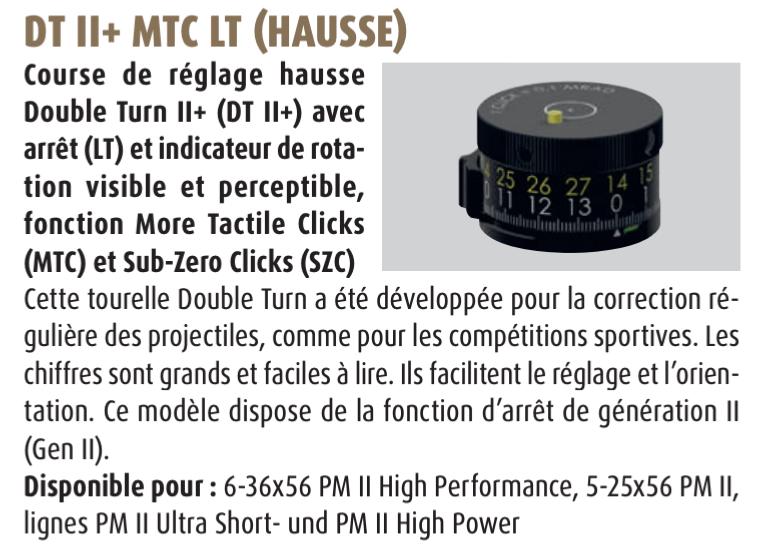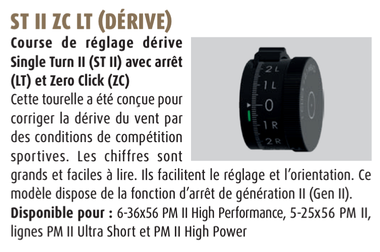 - Plage de réglage dérive (interne) : 15,5 MRAD