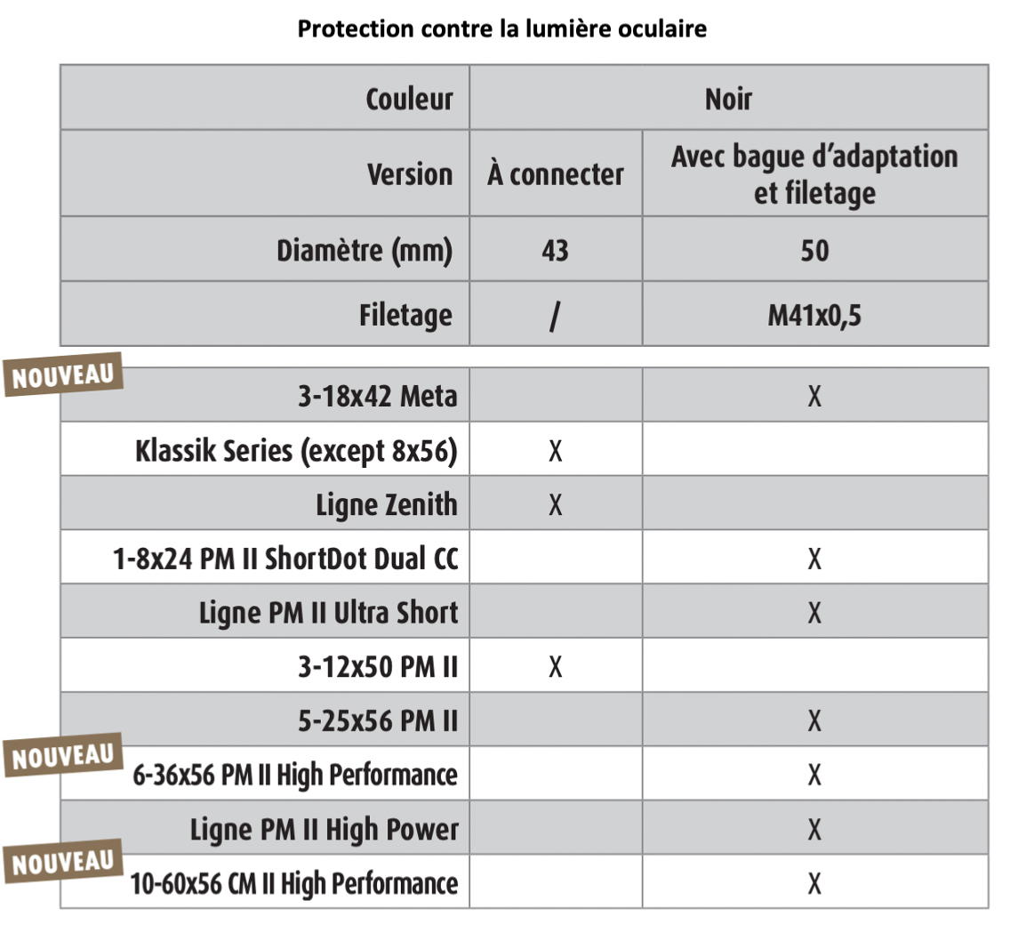Protection contre lumière oculaire pour lunette Schmidt & Bender, Klassik, Zenith et PM II