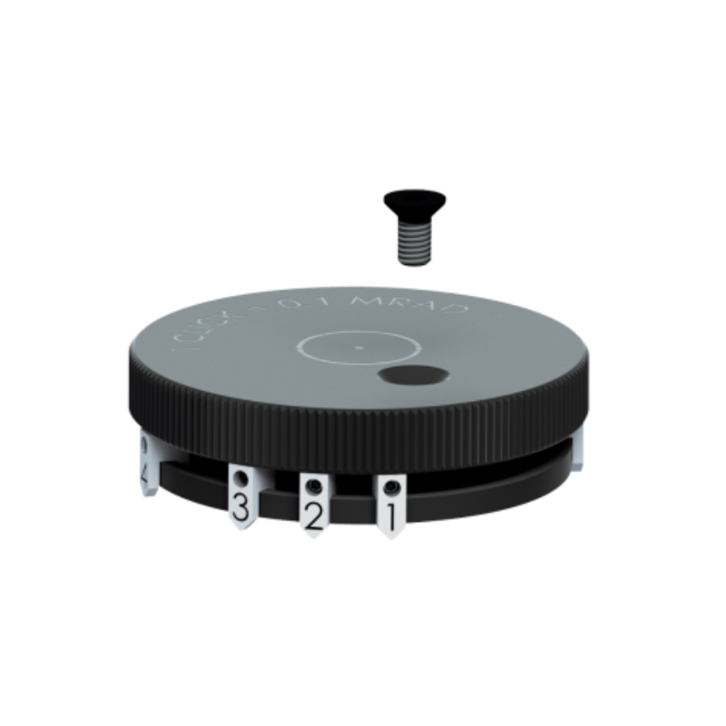 La tête de tourelle interchangeable avec 6 indicateurs de position gravés (1–6) est spécialement conçue pour les systèmes ST II-B. Elle permet un réglage précis et rapide du réticule II-Ballistic pour compenser la distance de tir selon les besoins.